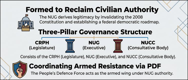 NUG under the Federal Democracy Charter 2021 (Federal Charter) derives its legitimacy by invalidating the 2008 Constitution by the MA. This charter creates a roadmap for a Federal Democratic Union with an aim to formulate a new constitution by the people and their elected assembly. However, the transition from these founding principles to a functioning administrative state has been hampered by significant structural and operational barriers. An analysis of the lack of expected success of NUG is covered in the succeeding paragraphs.